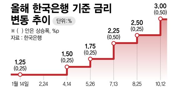 지난달 31일 기준 5대 은행(KB국민·신한·하나·우리·NH농협)의 변동금리는 5.02~6.61%, 고정금리는 5.35~7.33%, 신용대출금리는 5.02~6.61%다. 5.95%에서 7.55%까지. 미국 연방공개시장위원회(FOMC)가 3일 기준금리를 0.75% 포인트 인상하는 '자이언트 스텝'을 취하고, 한은은 이달 24일 기준금리를 추가로 인상한다. 이 때문에 올해 말까지 주택담보대출과 신용대출 금리의 상한선이 8%대에 달할 것으로 전망된다.